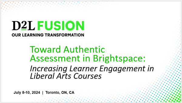 We’ll also discuss the Brightspace tools that make it easy to set up authentic assessments in our courses, how Brightspace compares to Universal Design for Learning principles and accessibility in general, how evidence-based learning practices fit into these assessments, and how we can share ideas, questions, and examples going forward.
